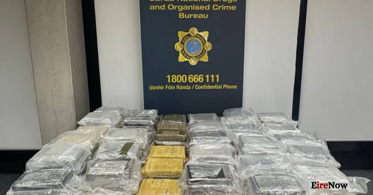 Gardaí conducted two separate searches in Gorey, Co Wexford, and Shankill, Dublin. During the operation, authorities recovered approximately 104 kg of suspected cocaine, with an estimated street value of €7,280,000.