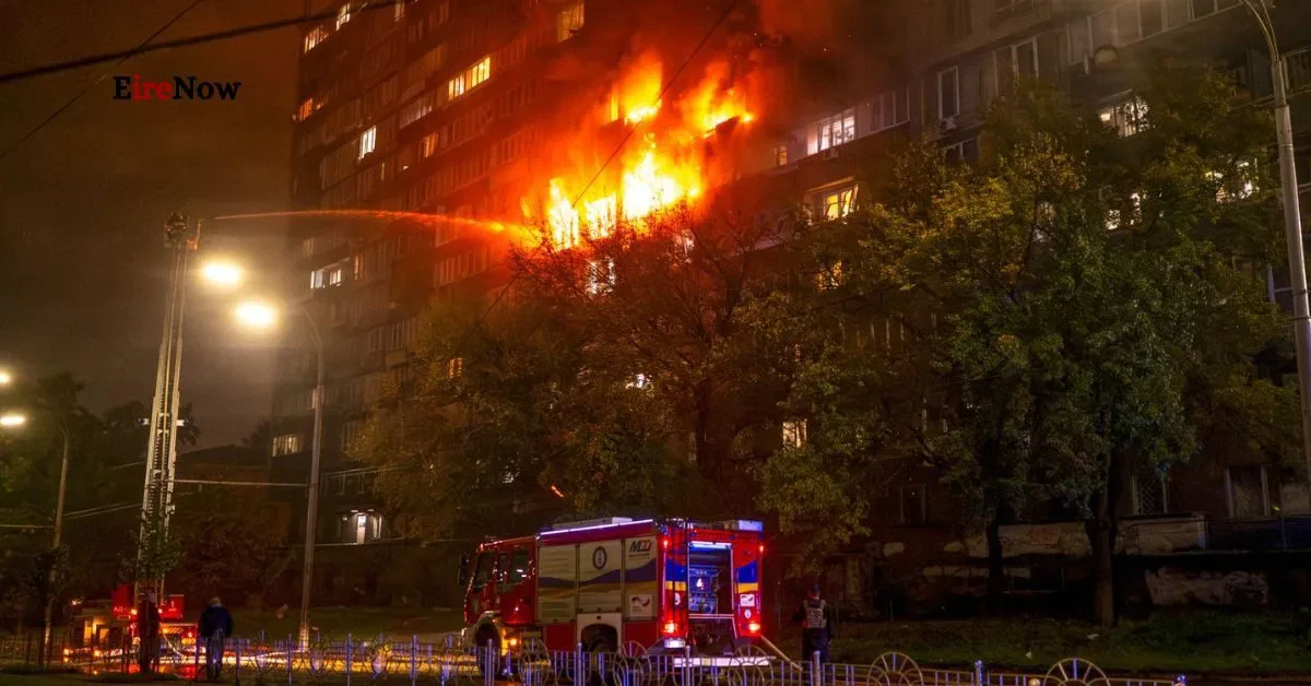 City Mayor Vitali Klitschko confirmed that nine people were injured in the strikes on the capital, with five requiring hospitalization. Residents in the eastern districts of Kyiv were plunged into darkness and faced significant disruption to water supplies following the wave of attacks, which also hit apartment buildings. Images released by Ukraine’s state emergency services showed firefighters battling blazes at a 10-story building in the city.