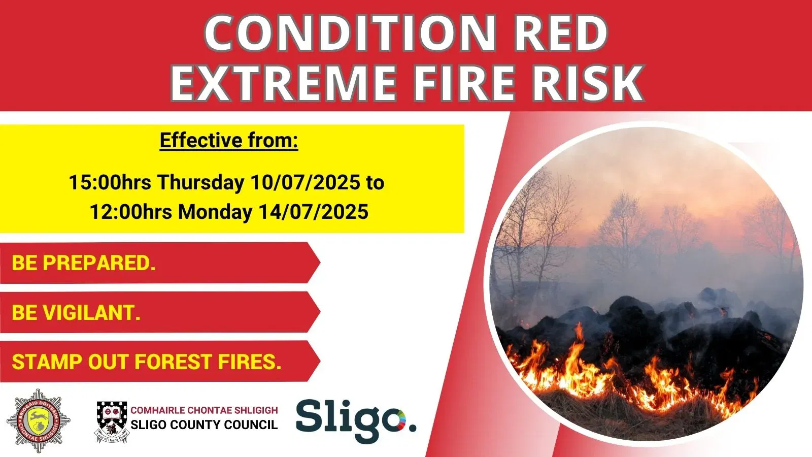 County Sligo is under a condition red extreme fire risk warning. This is the highest level of fire danger.